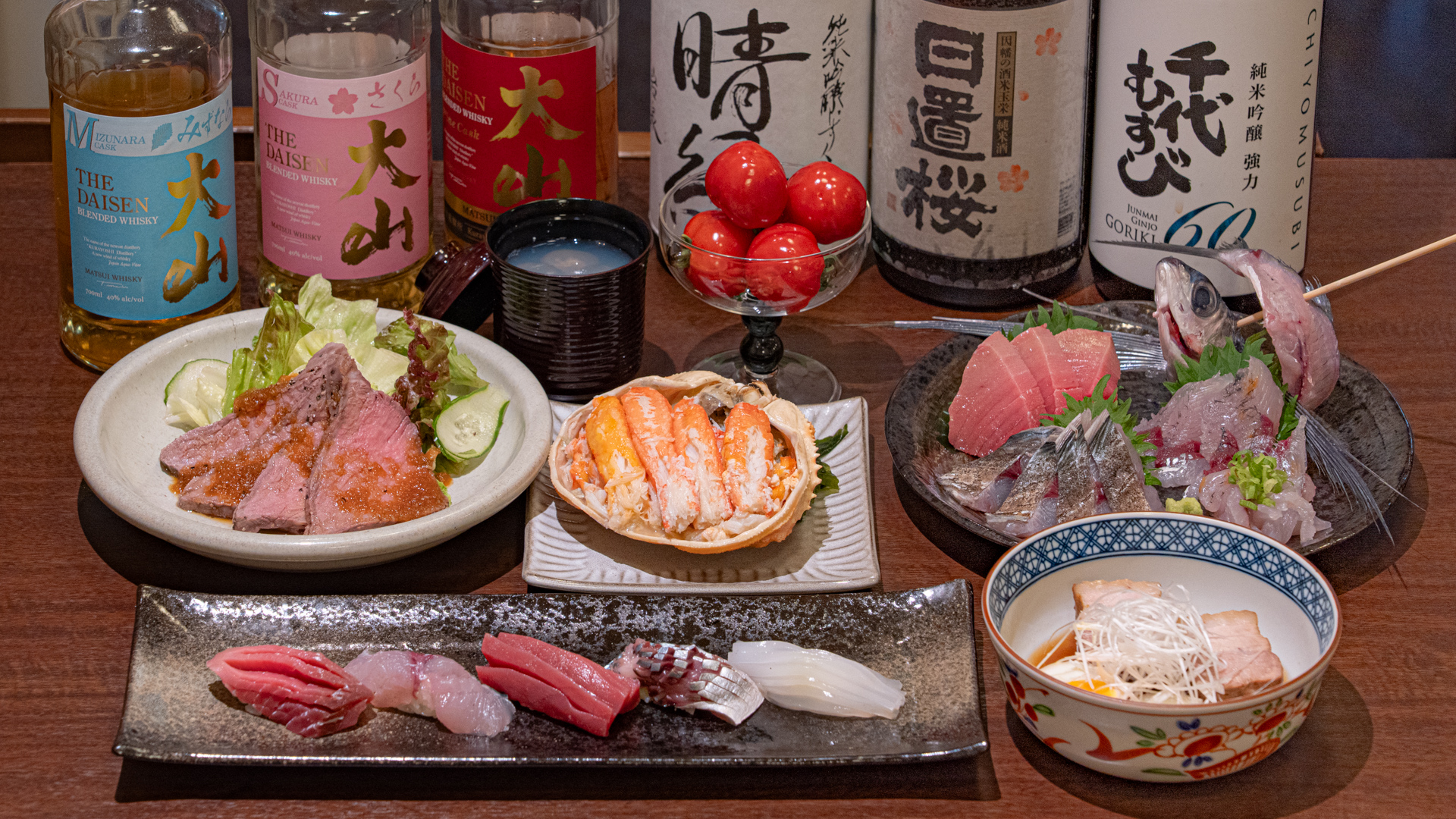 鳥取県米子市・境港などから直送の旬の食材と、鳥取の地酒・ウイスキーが楽しめるお店。